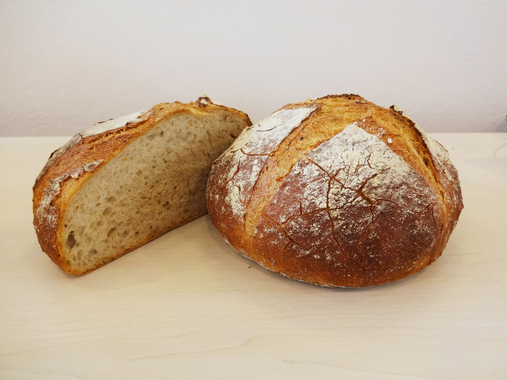 レーズンから酵母をおこし、じっくりと発酵させて焼き上げました。 ライ麦と全粒粉も入っていますので素朴で 香ばしく味わい深いお味となっています。 お肉料理にも合いますしサンドイッチにもオススメです。 火曜日の日替りパンです。